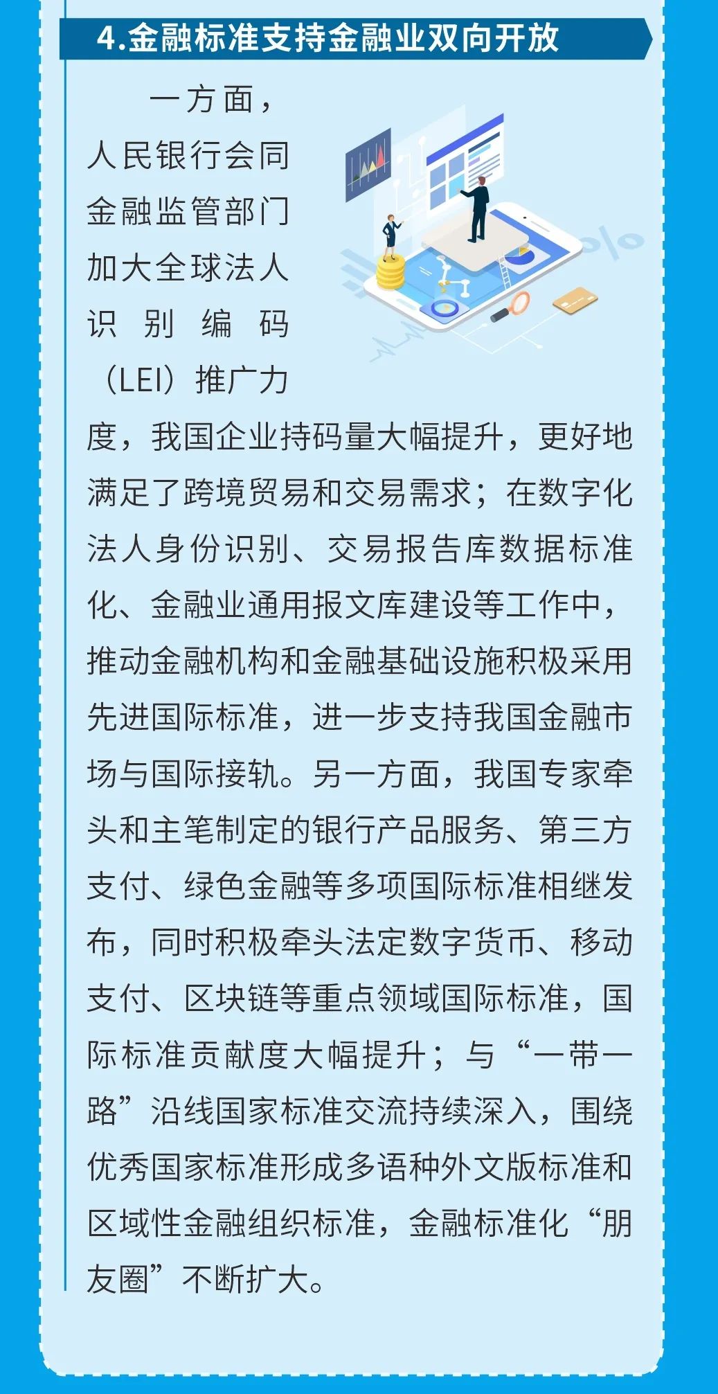 金融標準是金融業健康發展的技術支撐,是金融業治理體系和治理能力現代化的基礎性制度,中國人民銀行宣傳推廣重點金融標準,切實做好金融從業人員及消費者金融標準化宣教和普及工作,在行業內營造對標達標的良好氛圍,引導消費者使用達標服務與產品,進一步維護消費者合法權益。