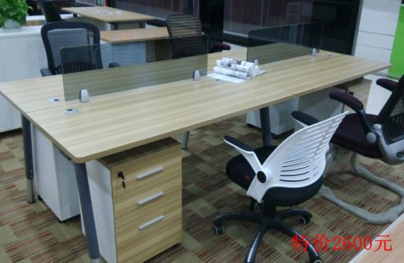 此款職員桌6063 --4人位,原價:3200元/套,特價:2600元/套,尺寸:2800W*1200D*1050H,配小柜(不含主機架、鍵盤架),典致家俱展廳廣東現貨一套,特價搶購,售完為止。
