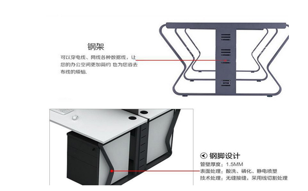 典致西安辦公家具中的蝴蝶型鋼架,有強(qiáng)大的走線功能,有精美的外觀,成為2015年鋼架辦公桌的新寵。下圖是剖開看的鋼架細(xì)節(jié)圖。