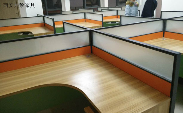本款屏風辦公位為F型四人辦公位,方便員工之間的交談,更好的提高工作效率。