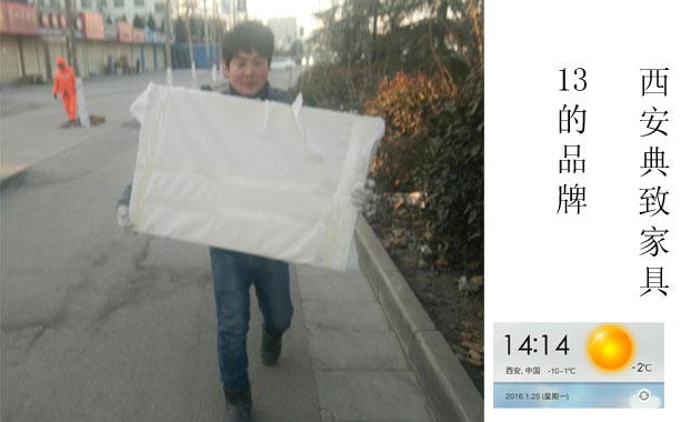 昨天接到胡家廟客戶的電話,要求上門更換家具,今天早上的時候,典致家具的員工A,于早上八點帶著客戶要的東西,前往車站,乘車去客戶要求的地方。今天的氣溫是-10到-1.可見天氣的惡略,走在上上的時候,寒風吹打在身上,無比的刺骨,而我們西安典致的員工,即使天氣再嚴寒也阻擋不了前進的步伐。