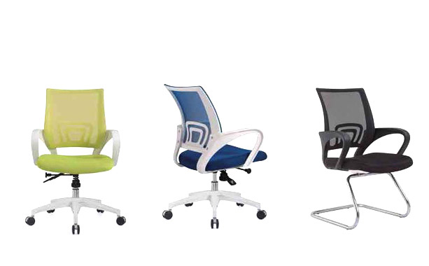 本款辦公椅采用的面料:選用優質網面,按照人體工程學設計,坐感舒適,透氣涼快,阻燃,防靜電。辦公椅椅板:高頻熱壓機熱壓成型,效果好,不易開裂,不變形,并經多重工序處理,,防皺,防蟲,易于清理。辦公椅底座:電鍍五星腳,色澤舒適,靈活方便,且不損地面。