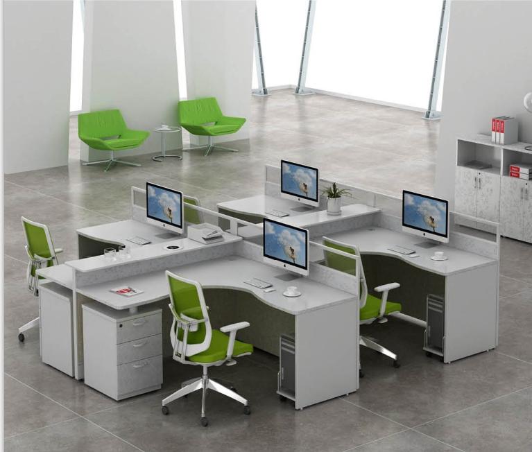 辦公家具在色彩搭配上采用了清爽的綠色和干凈的白色相搭配,在結構布局上使得整個辦公系統更加開放,并且可以讓辦公人員在不同的階段進行自由的組合,換換視覺感受,一個良好的辦公環境是肯定可以提高工作效率的。
