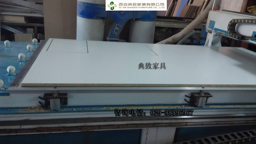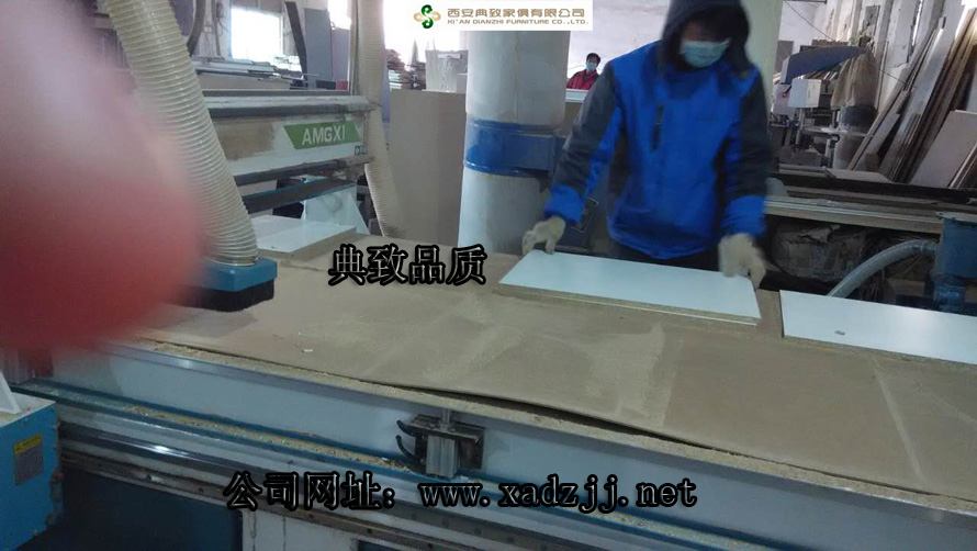 采用先進的數控裁割機,利用計算機對板子的尺寸、大小進行參數設置,這是活動柜的生產過程。