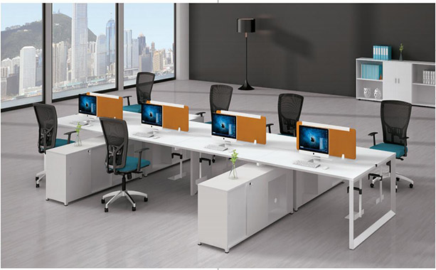 鋼架辦公桌M401豎排效果辦公相對獨立,互不打擾,桌前擋板可以更好的保護(hù)個人工作